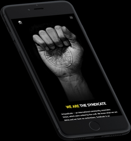 По-скольку Артсиндикат оказались не из робкого десятка и были готовы к смелым решениям, при разработке дизайна сайта базовым выступил черный цвет. А чтобы оживить страницы сайта и логически продолжить идею логотипа, мы наполнили дизайн тематическими анимациями и видео-заставками.