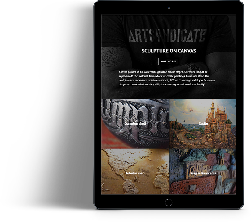 Для Артсиндиката мы осуществили работы по редизайну логотипа (максимально упростили, но сохранили узнаваемость прежнего логотипа), а также разработали сайт-портфолио.