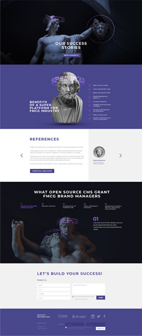 Отличный пример яркого сотрудничества студии дизайна и it-компании. У нас получился свежий смелый проект сайта, дизайн которого визуально связал традиции прошлого и технологии нового дня.