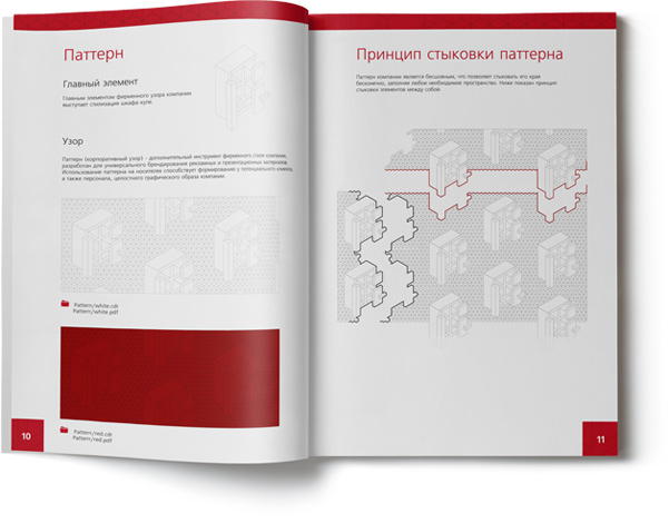 Объективно корректное соотношение элементов логотипа было достигнуто путем построения фирменного знака по модульной сетке. Для оформления носителей фирменного стиля была разработано бесшовное графическое полотно — фирменный паттерн. Цветовая схема — графическая классика.