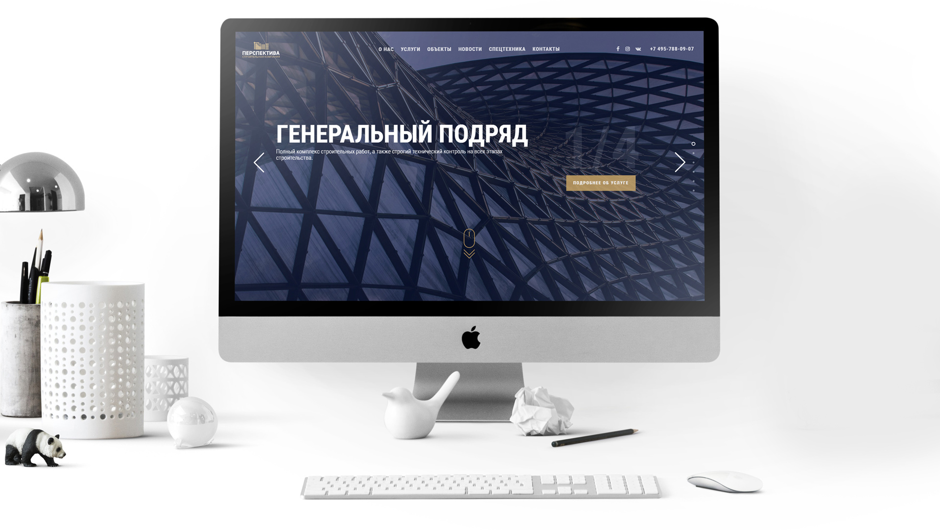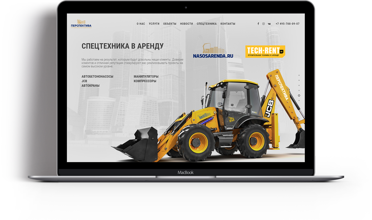 СК «Перспектива» предлагает полный спектр решений в области строительства: это и проектирование, и строительство, и строительный контроль с генподрядом, и даже спецтехника в аренду. Дизайн сайта строго соответствует фирменному стилю компании, который, к слову, создан силами нашей студии. Все направления деятельности «Перспективы» представлены на сайте отдельными разделами. Главная страница сайта воплощена в формате скролл-экранов.