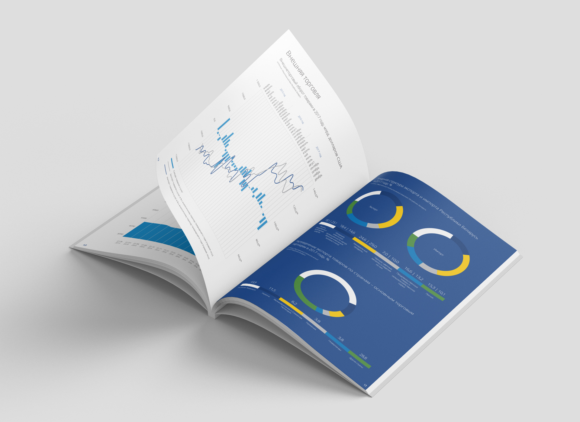 Первую разработку годового отчета для «Белэксимгарант» мы осуществили год назад. Мы были воодушевлены идеей предложить клиенту дизайн годового отчета, визуализация которого была бы реализована в формате корпоративного журнала, тем самым преподнося информацию ярко, свежо, нестандартно. Спустя год, получив хорошие отзывы о своей работе, мы приступили к разработке дизайна годового отчета за 2017 год.