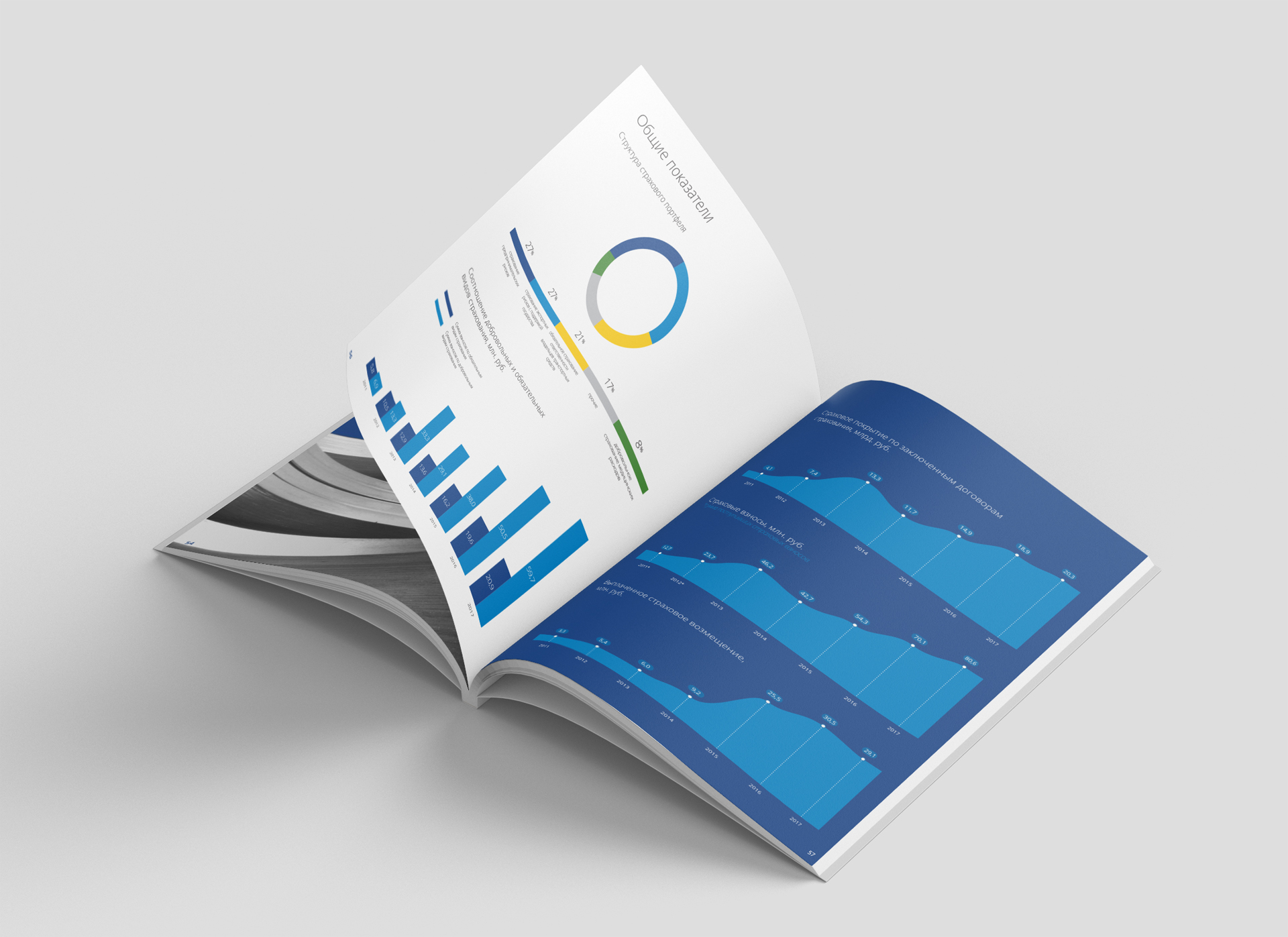 Дизайн годового отчета «Белэксимгарант» 2017 года хранит в себе все симпатичные клиенту графические приемы документа предыдущего года, однако не вторит, а развивает образованный стиль. Верстка полос по-прежнему является отличной от разворота к развороту, но подача информации скорее напоминает веб-страницы, что безусловно подчеркивает: компания шагает в ногу со временем.