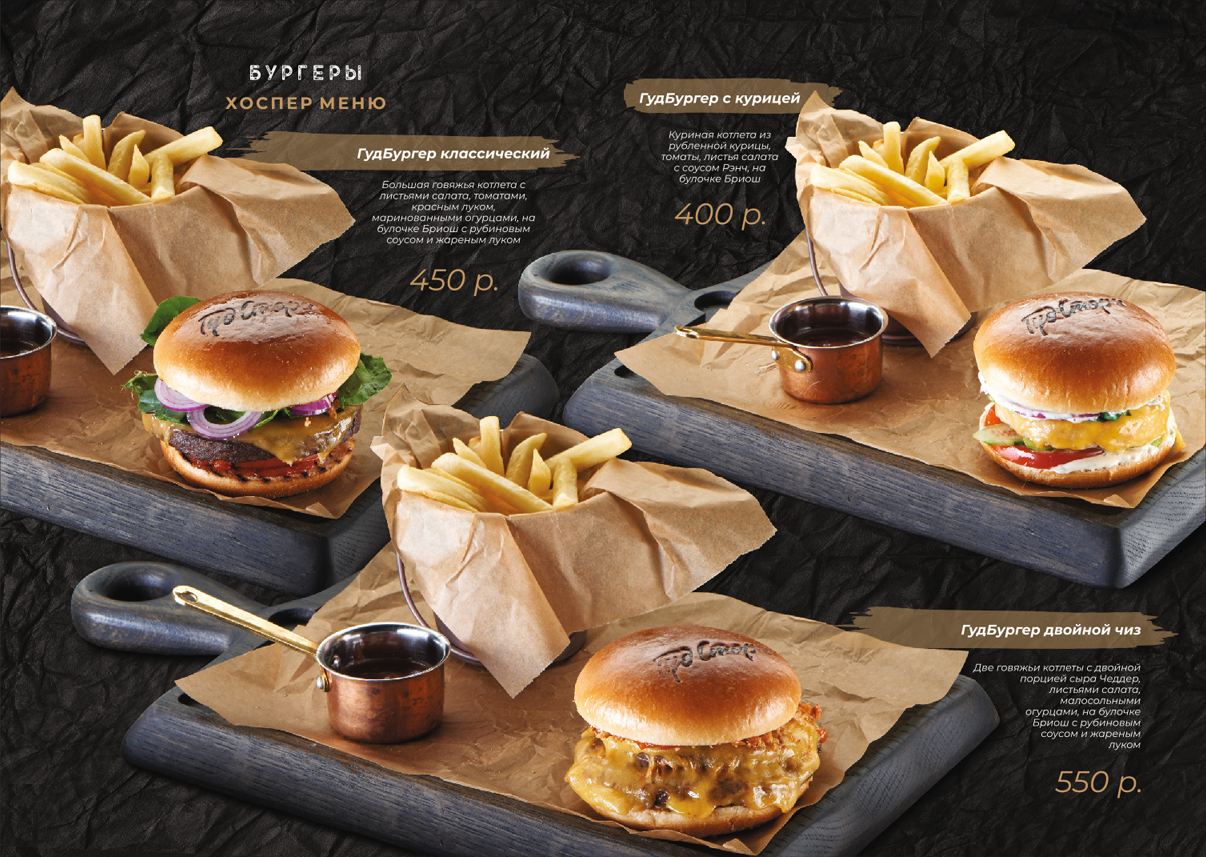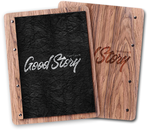 Уверены, вы тоже не в восторге, когда выбор в кафе или ресторане приходится делать исключительно на основании названия блюда и его ингредиентов. Все же в таких вопросах все мы визуалы. «Увидеть — захотеть — заказать». Такая простая и понятная для посетителя схема, которой пренебрегает большое количество заведений в целях экономии своего бюджета. «Good Story» не из их числа! Рестопаб гордится своим меню и с особой гордостью «демонстрирует товар лицом». Мы с большим удовольствием взялись за разработку дизайна меню. Получилось вкусно!