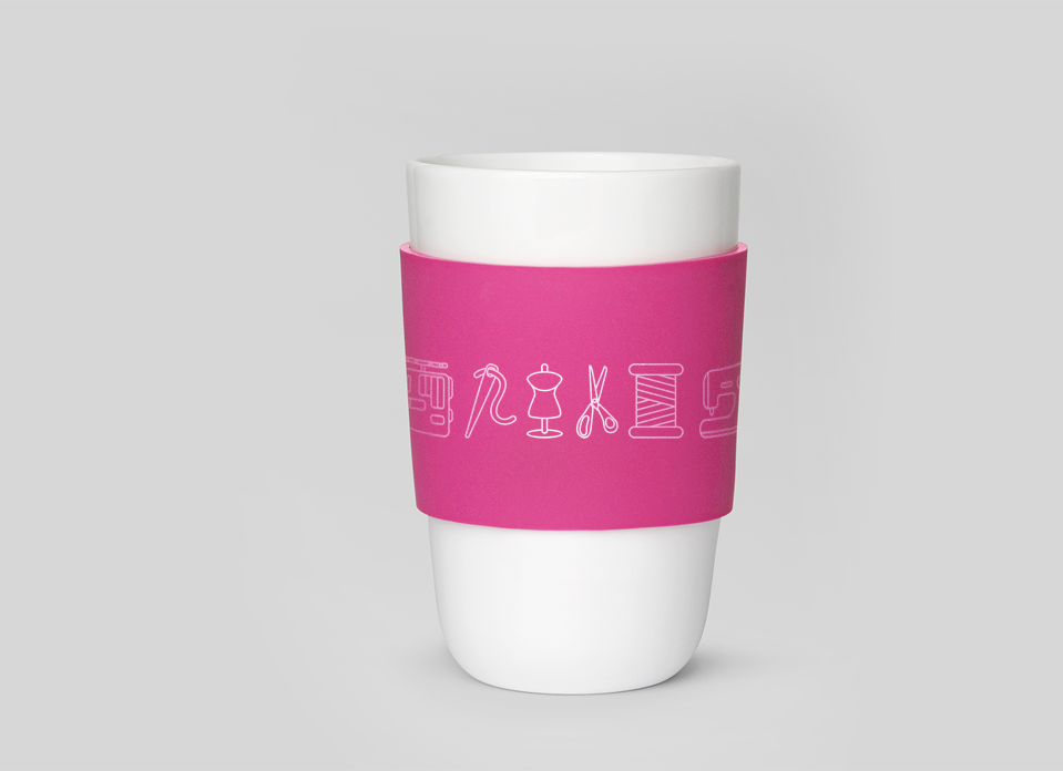 Основу стиля заложил иконический знак — стилизация швейной машинки, а в качестве графического инструмента маркирования (брендирования) мы использовали паттерн, который является визуализацией некоторых ассортиментных единиц.