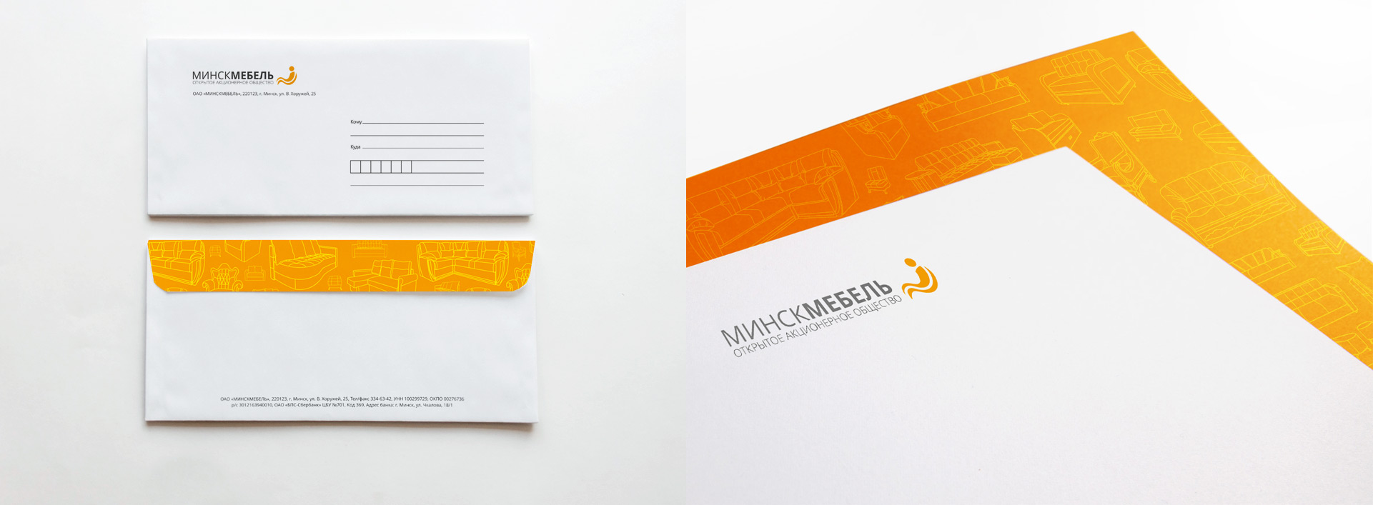 Разработка фирменного стиля «МинскМебель» базировалась на уже существующем логотипе компании, предполагала его редизайн с сохранением узнаваемости, разработку дизайна носителей деловой документации, сувенирной продукции, полиграфических материалов.