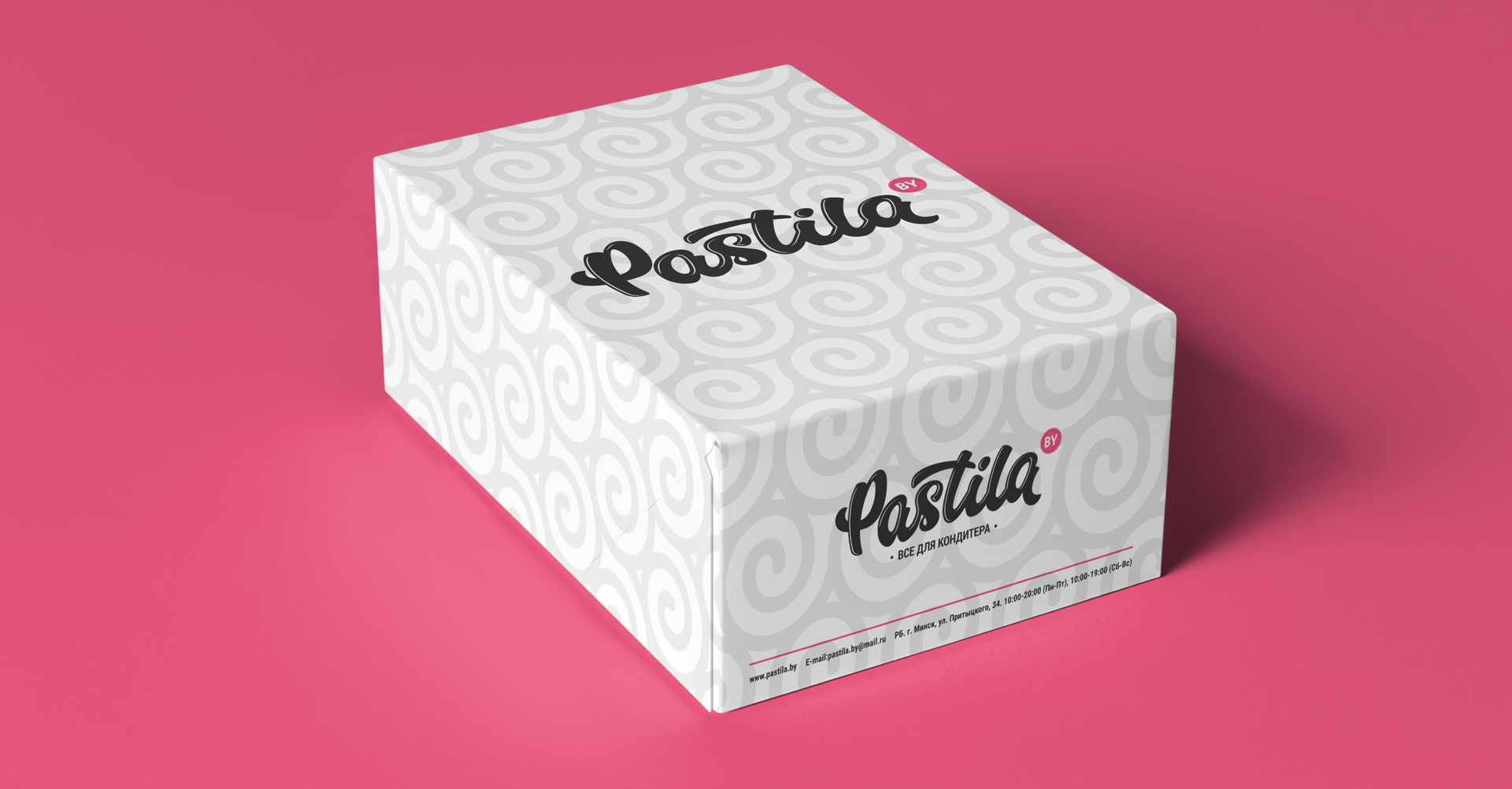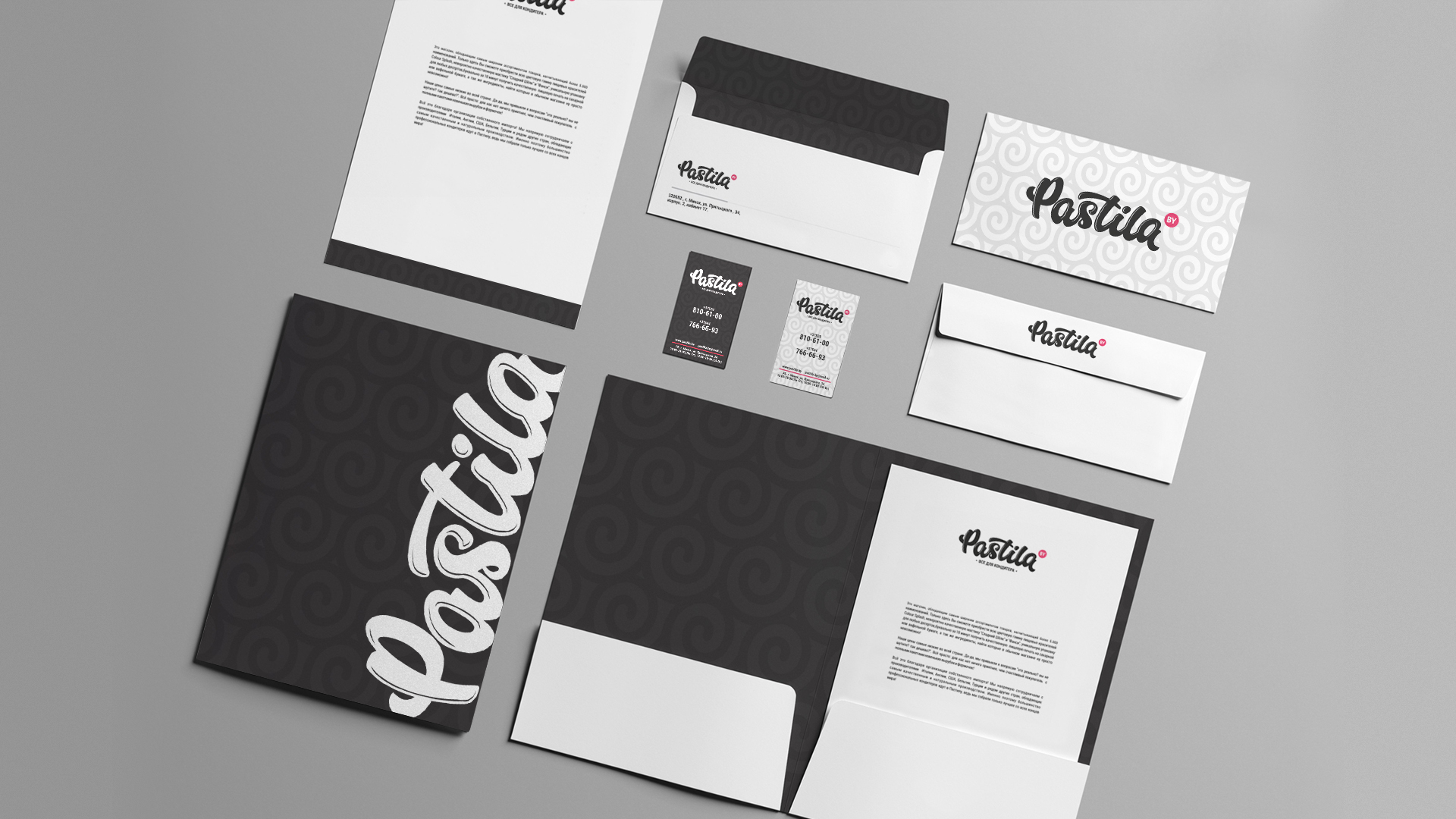 К слову, помимо логотипа был создан и фирменный паттерн Pastila (корпоративный узор). Эти причудливые «закорючки», которые вы видите на фоне, есть не что иное, как стилизация спирали пастилы. Ненавязчиво, без претензии на все внимание зрителей, узор великолепно вносит визуальное разнообразие в оформление любых плоскостей, которые требует фирменного брендирования.
