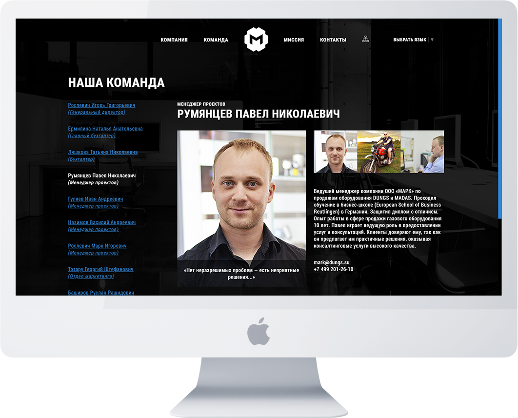 Если вам необходим имиджевый дизайн, а команда верстальщиков и разработчиков у вас уже есть, закажите разработку только дизайн-макетов сайта, как и поступили MARK. Вы получите все исходные материалы и последующую дизайн-поддержку в случае ее необходимости.