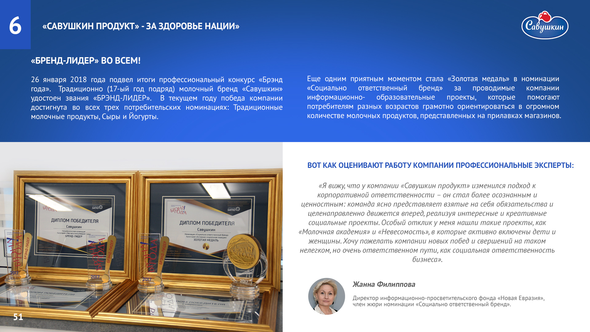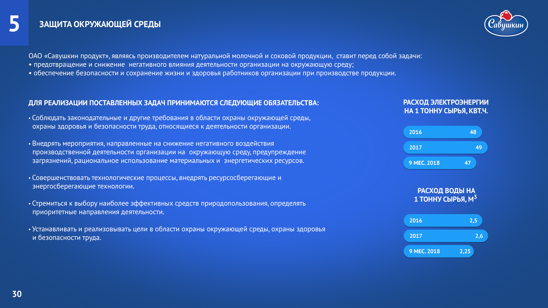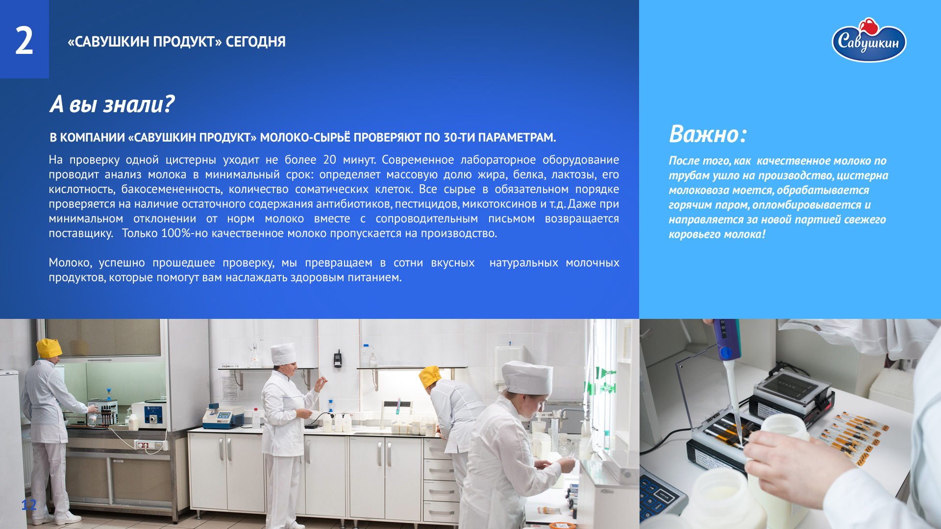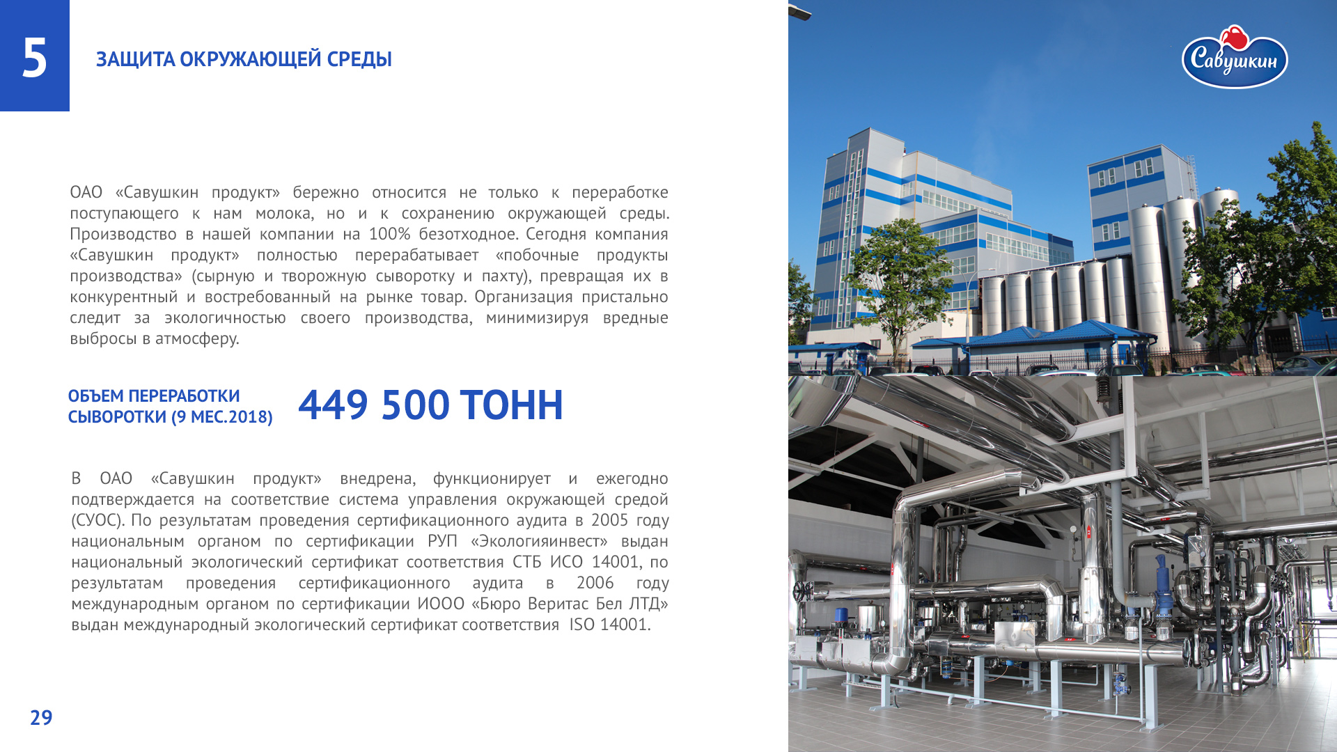 «Савушкин продукт» — безусловный лидер молочной отрасли Республики Беларусь. В 2006 году компания присоединилась к международной инициативе ООН «Глобальный договор», заявив о своей приверженности корпоративной социальной ответственности ведения бизнеса. Ежегодно компания предоставляет отчет о достигнутом прогрессе.