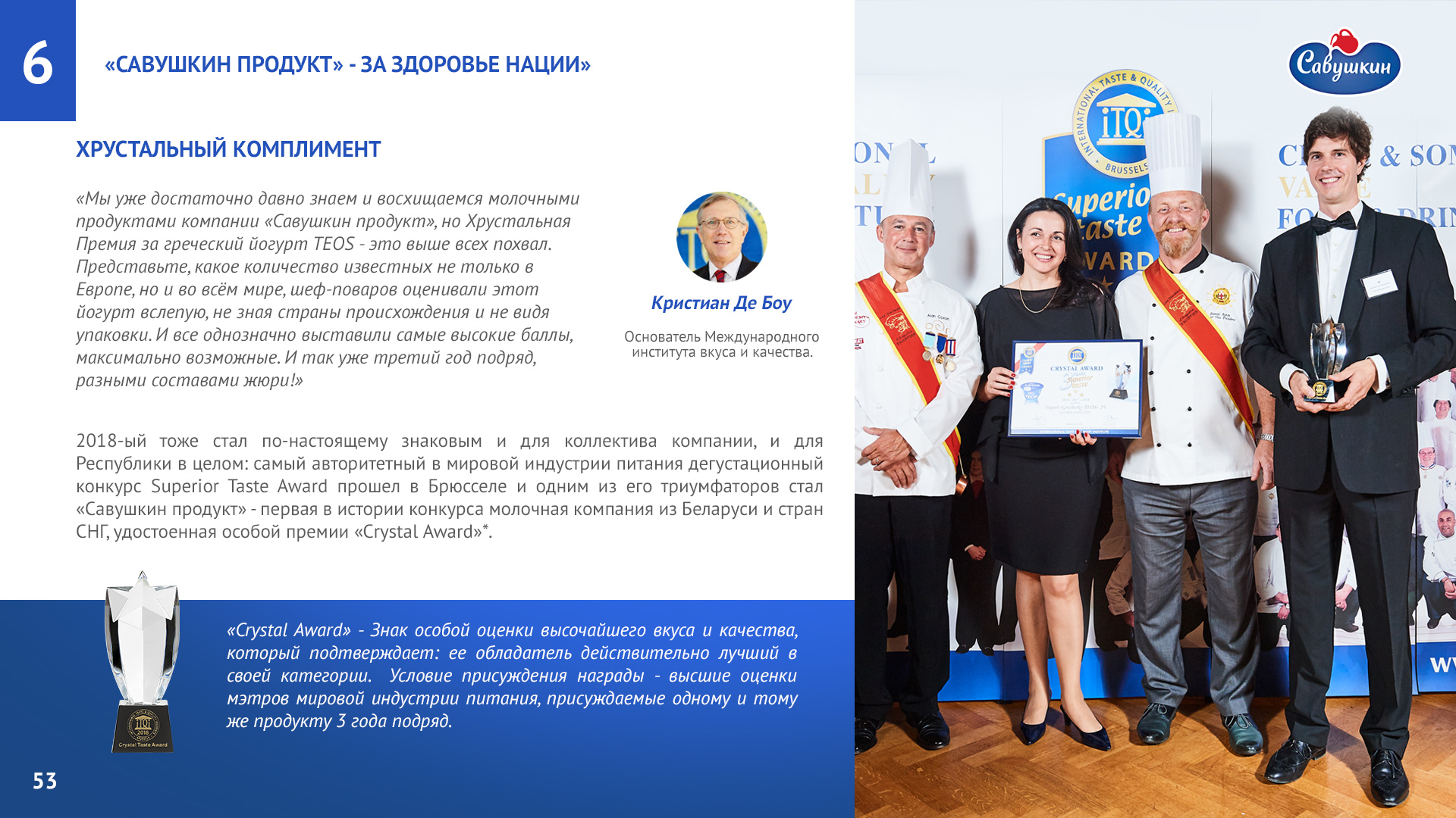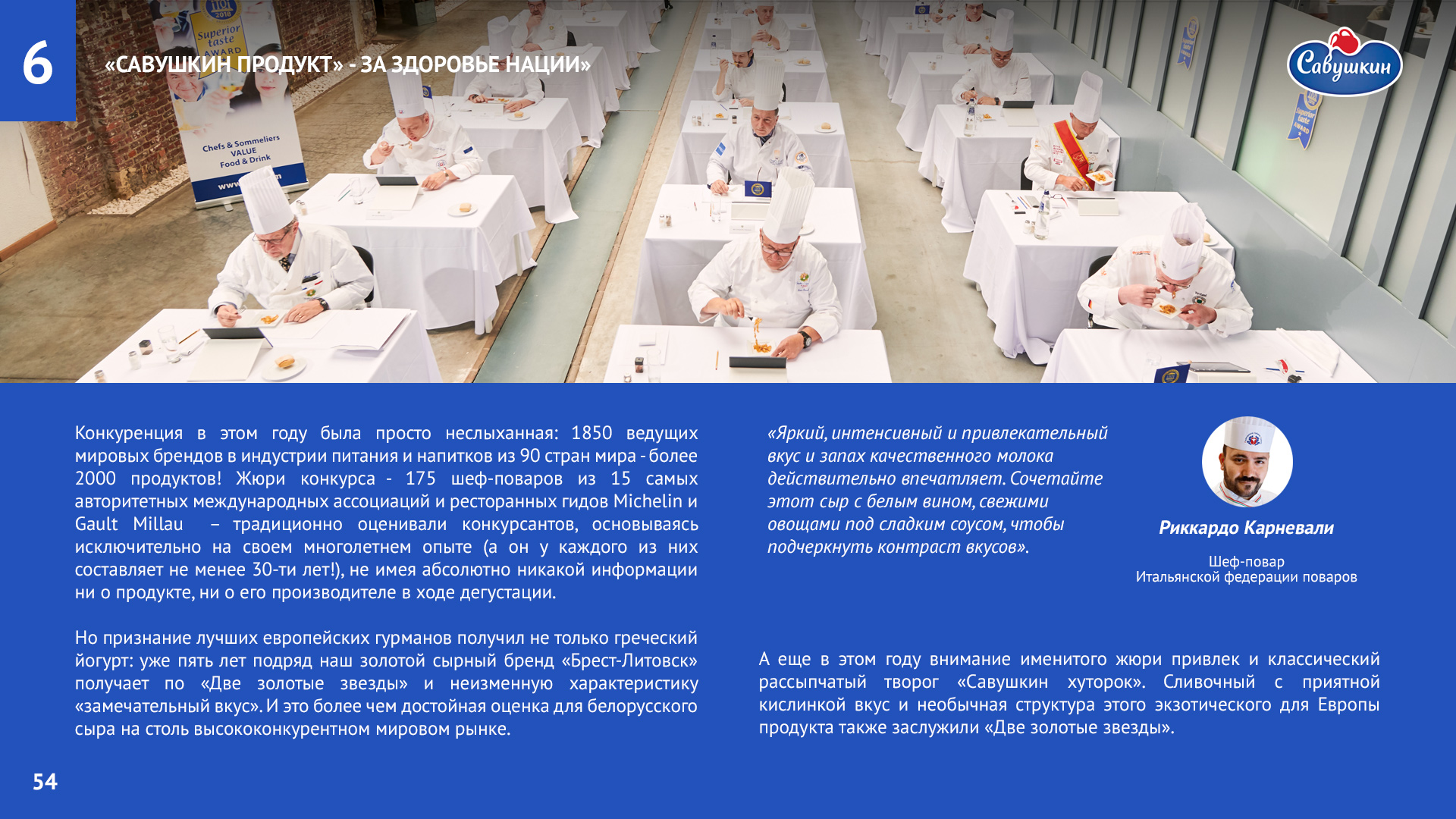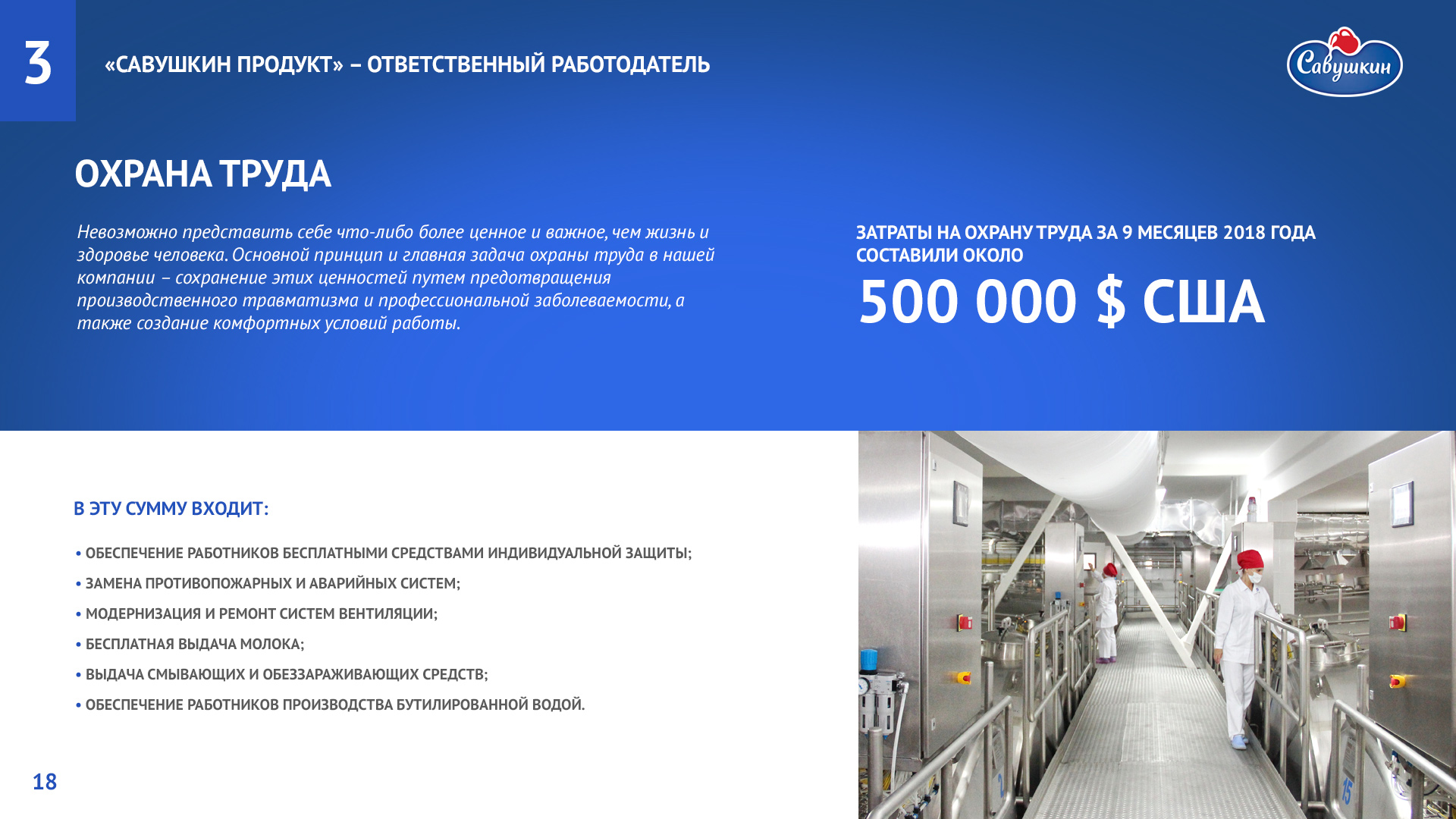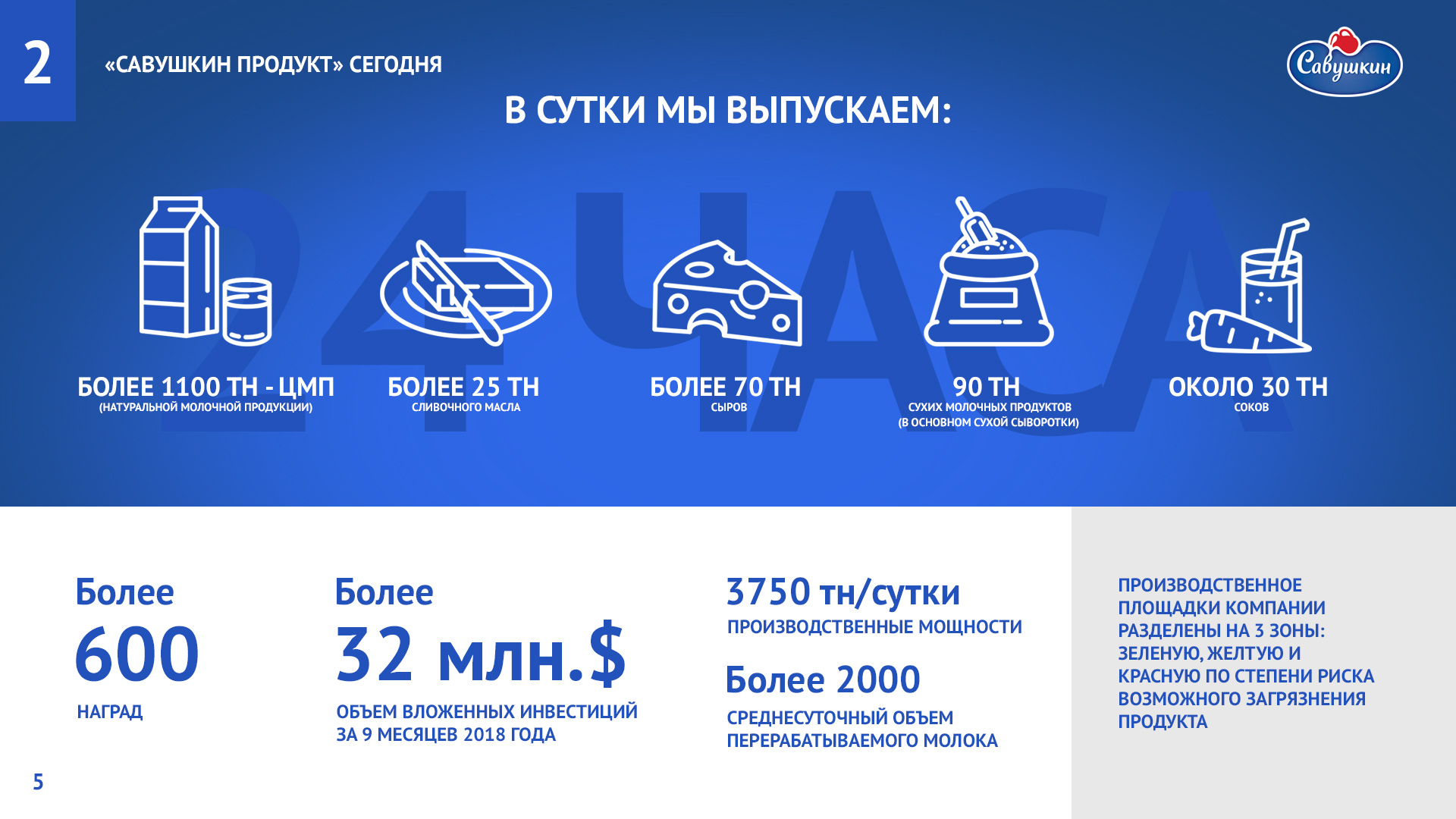 «Савушкин продукт» — безусловный лидер молочной отрасли Республики Беларусь. В 2006 году компания присоединилась к международной инициативе ООН «Глобальный договор», заявив о своей приверженности корпоративной социальной ответственности ведения бизнеса. Ежегодно компания предоставляет отчет о достигнутом прогрессе.