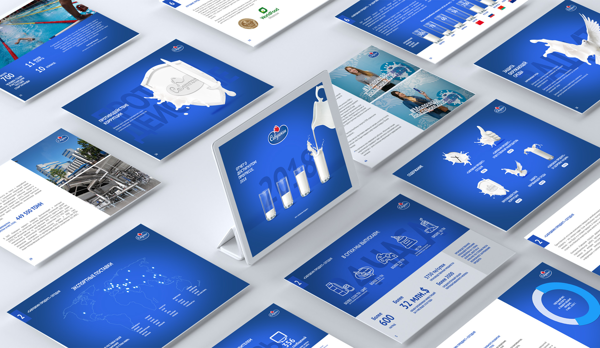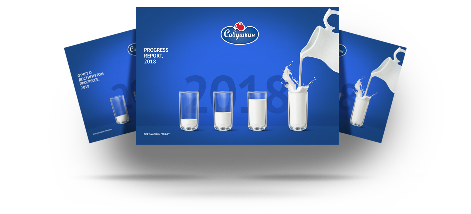 Разработка оформления отчета осуществлялась в строгом соответствии со стандартами фирменного стиля компании. Для каждого из разделов отчета мы создали имиджевые «молочные» иллюстрации. Согласованный клиентом результат работы был адаптирован для web-документа в трех языковых версиях (русской, английской и белорусской).