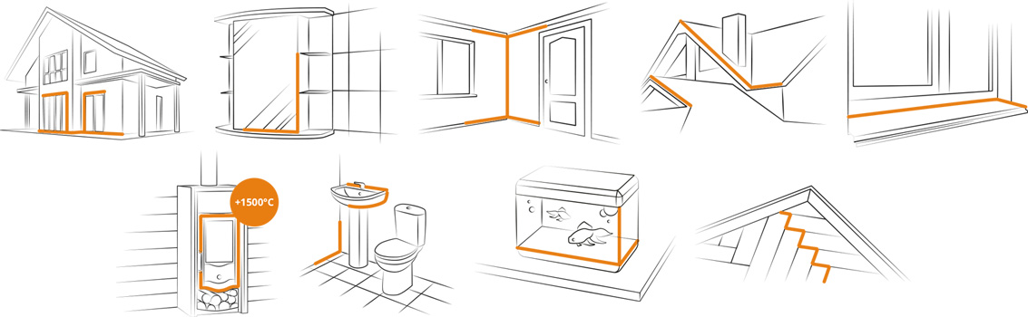 Для герметиков «Vega» в нашей студии дизайна были разработаны схематичные иллюстрации, которые наглядно демонстрируют область применения продукции. Просто выбирайте нужный герметик исходя из ваших задач и прочь все сомнения!