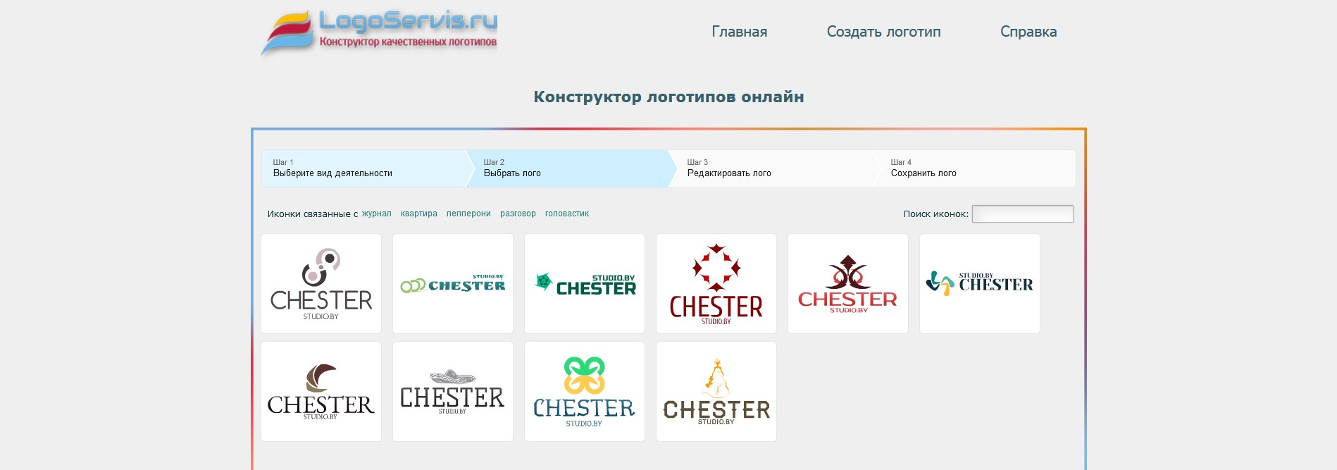 К нашему разочарованию обнаруживаем, что встроенный конструктор логотипов не просто аналогичен, а на 100% эквивалентен предыдущему сайту. Уходим с чувством незавершенного гештальта и легким дежавю.